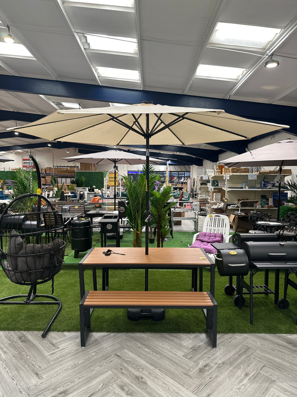 This item includes the parasol with a pole only. For enhanced stability, please purchase the other parasol base separately (LG0454 / LG0455 / LG0882 / LG0883).