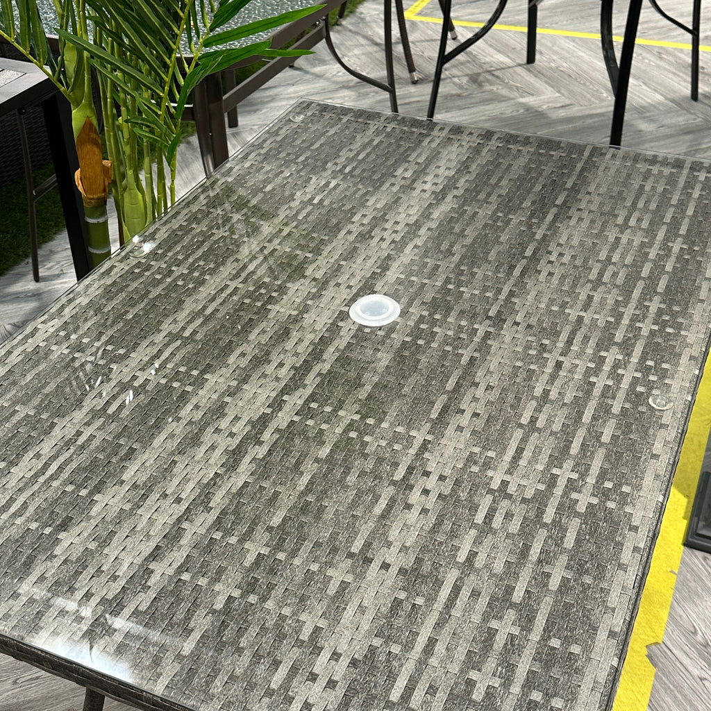 Garden Rattan Tempered Glass Top Table with Parasol Hole Black 120cm W