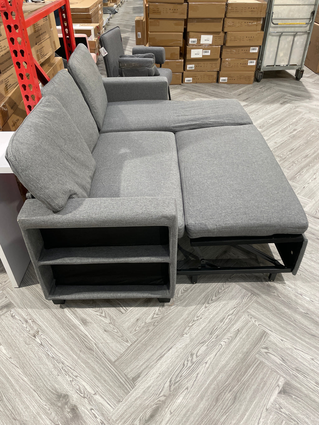 Linen L Shaped Corner Sofa Bed 3 Seater Sofa with Storage and Armrest Shelf Grey