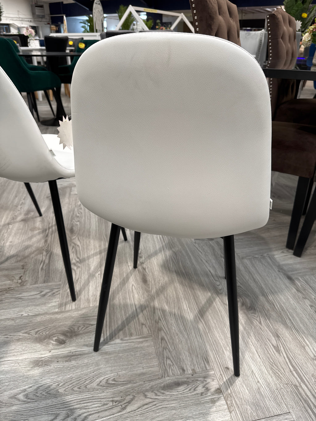 This sleek dining chair features smooth white PU leather and a minimalist silhouette, perfect for modern and contemporary dining spaces. The cushioned seat offers comfort, while the sturdy legs provide reliable support.