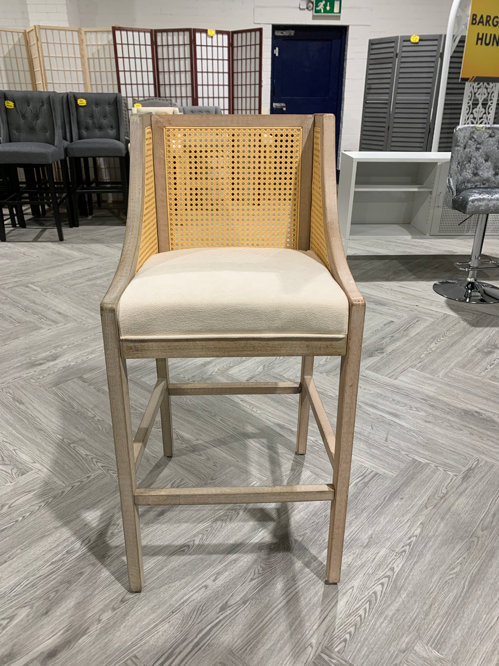 Give your space a natural touch with this set of rattan barstools. The woven low back offers warmth and charm, while the sturdy wooden legs and footrests ensure comfort. Plastic glides protect floors from scratches.