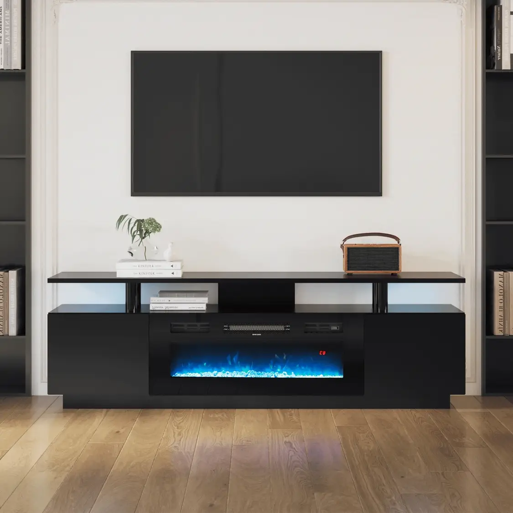 This elegant electric fireplace adds warmth and style to your home with its classic black design. Featuring a 900W/1800W heater and adjustable temperature settings (62°F-82°F), it ensures comfort throughout the year. The TV stand offers convenient storage, while the remote control makes operation effortless. Perfect for both heating and enhancing the look of any room.
