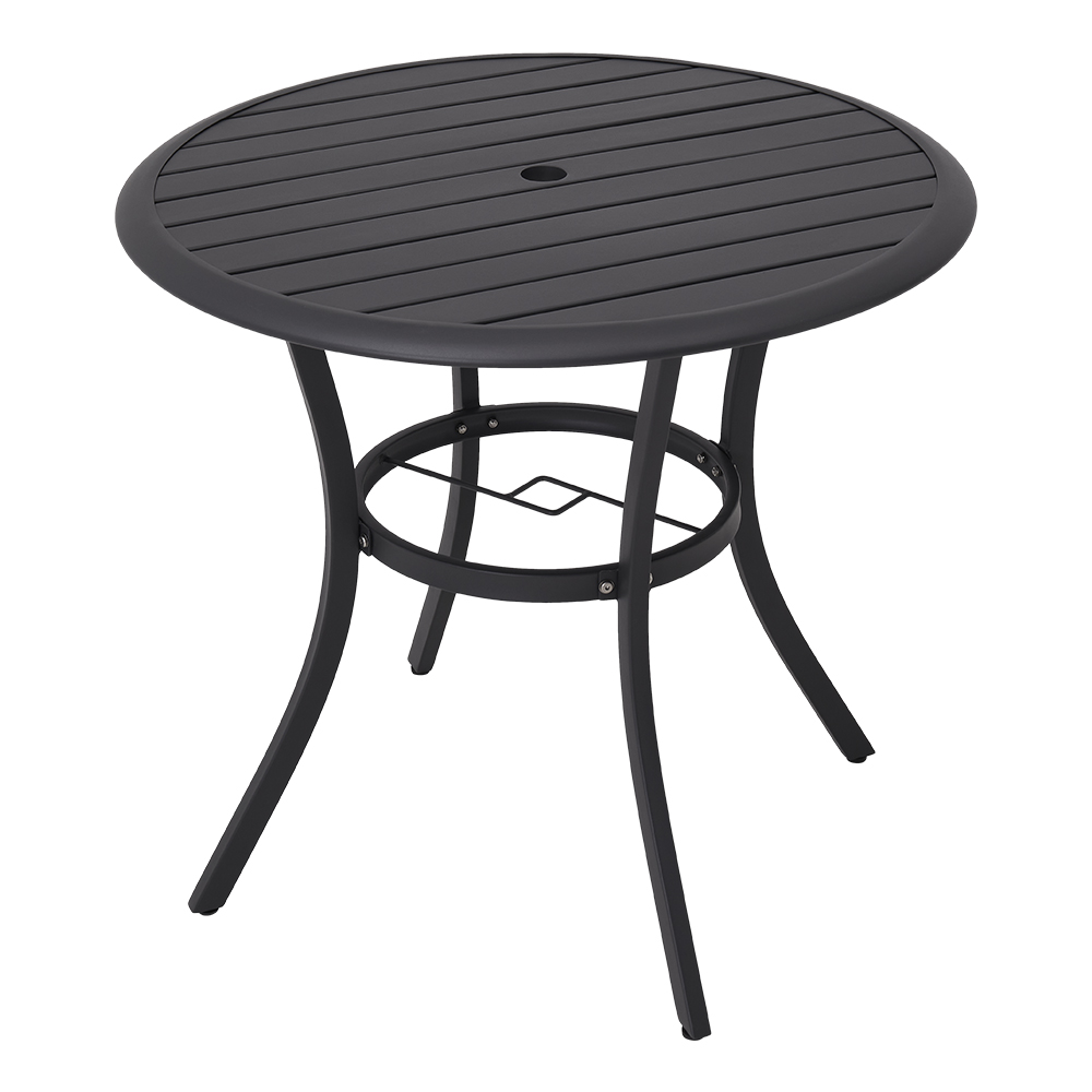 Relax with friends around our stylish Metal Slatted Coffee Table. Crafted from durable metal with an anti-corrosion coating, it's built to withstand the elements. The table also features a parasol hole for easy sun protection.