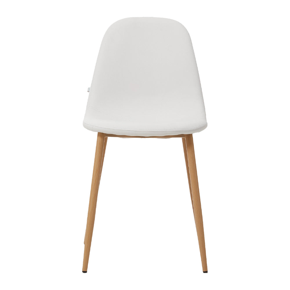 This sleek dining chair features smooth white PU leather and a minimalist silhouette, perfect for modern and contemporary dining spaces. The cushioned seat offers comfort, while the sturdy legs provide reliable support.