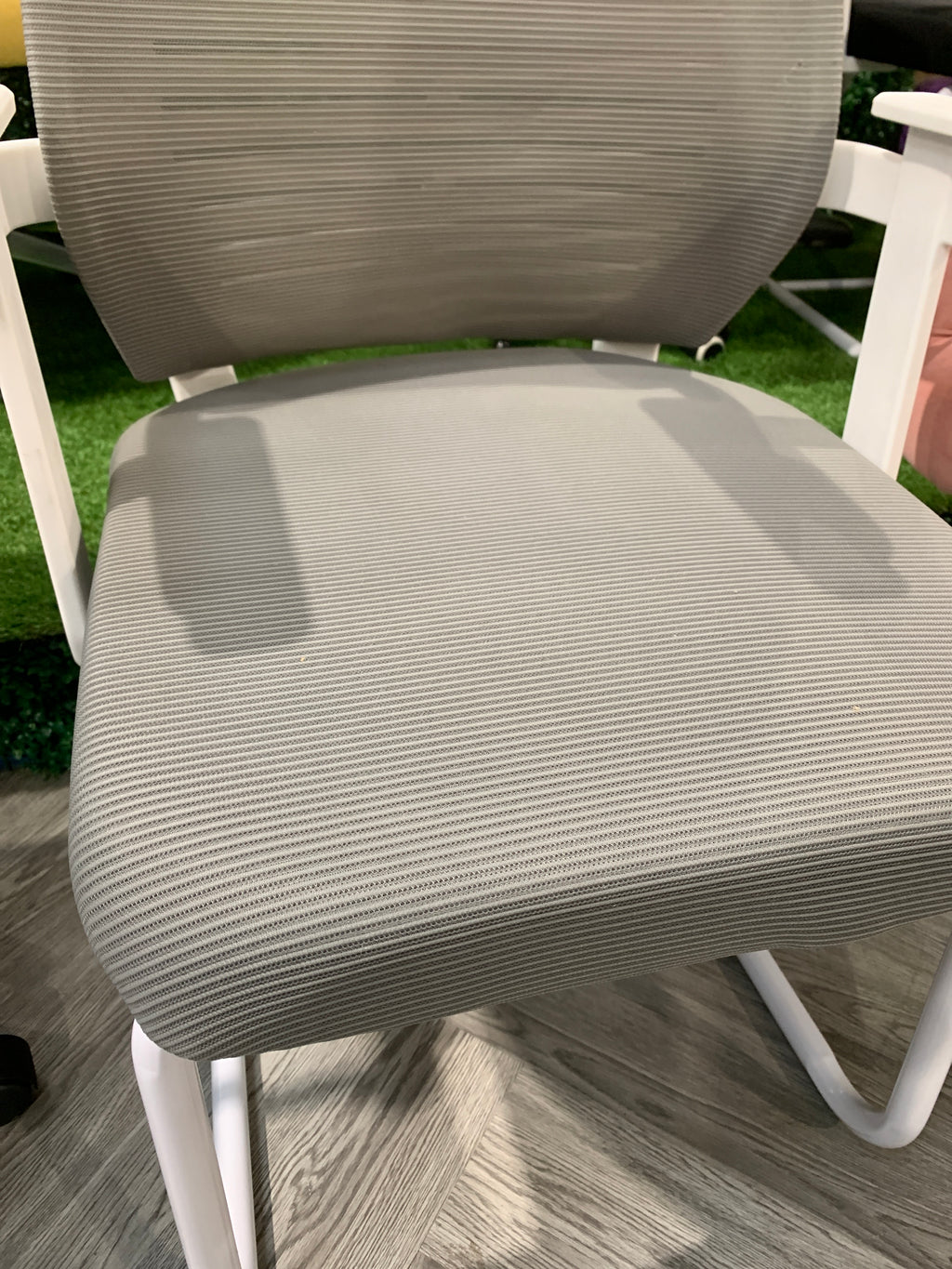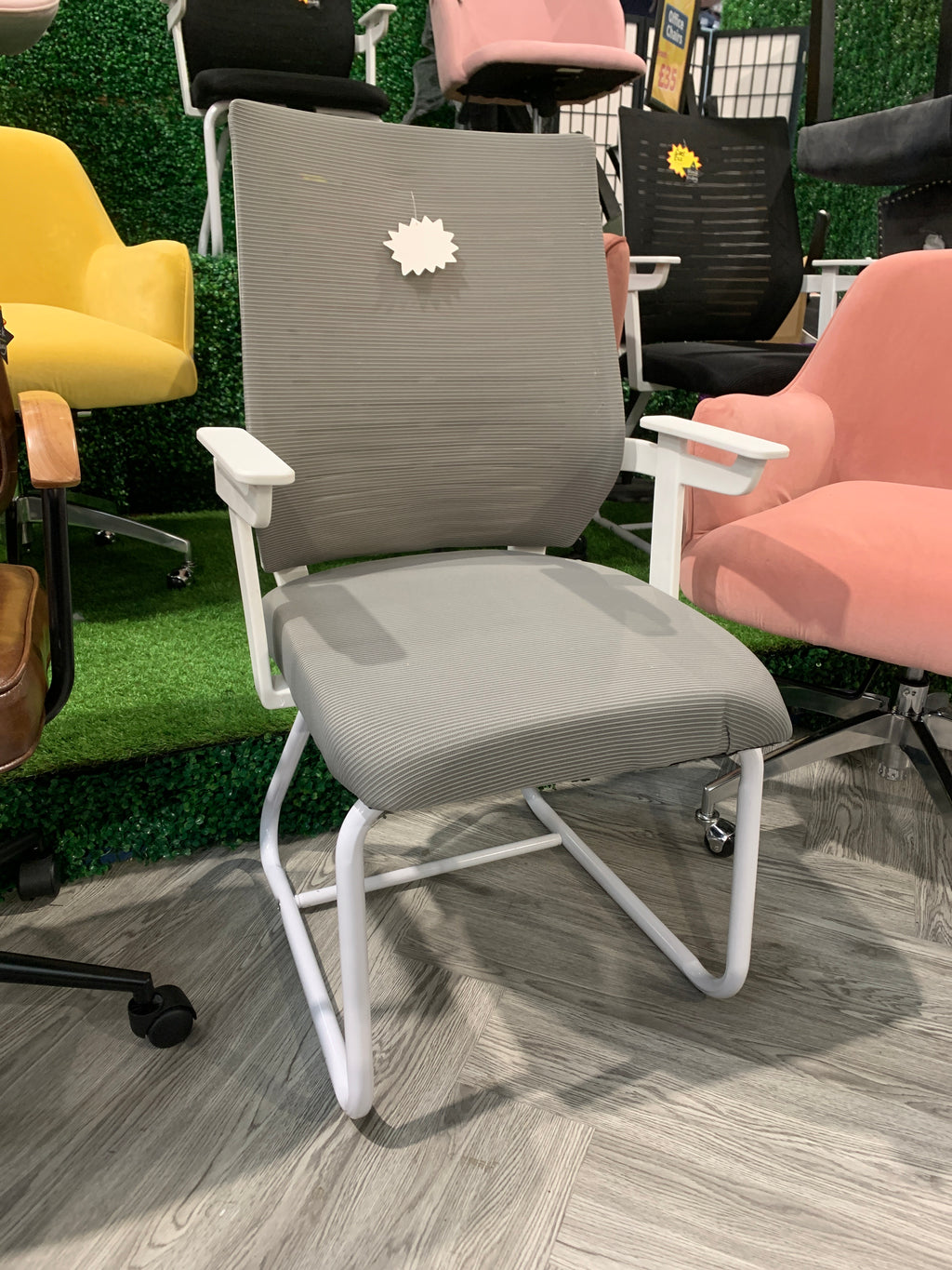 This sleek light grey office desk chair combines comfort and functionality for your workspace. The breathable mesh back promotes airflow, keeping you cool during long hours of use. Its padded seat provides additional comfort.