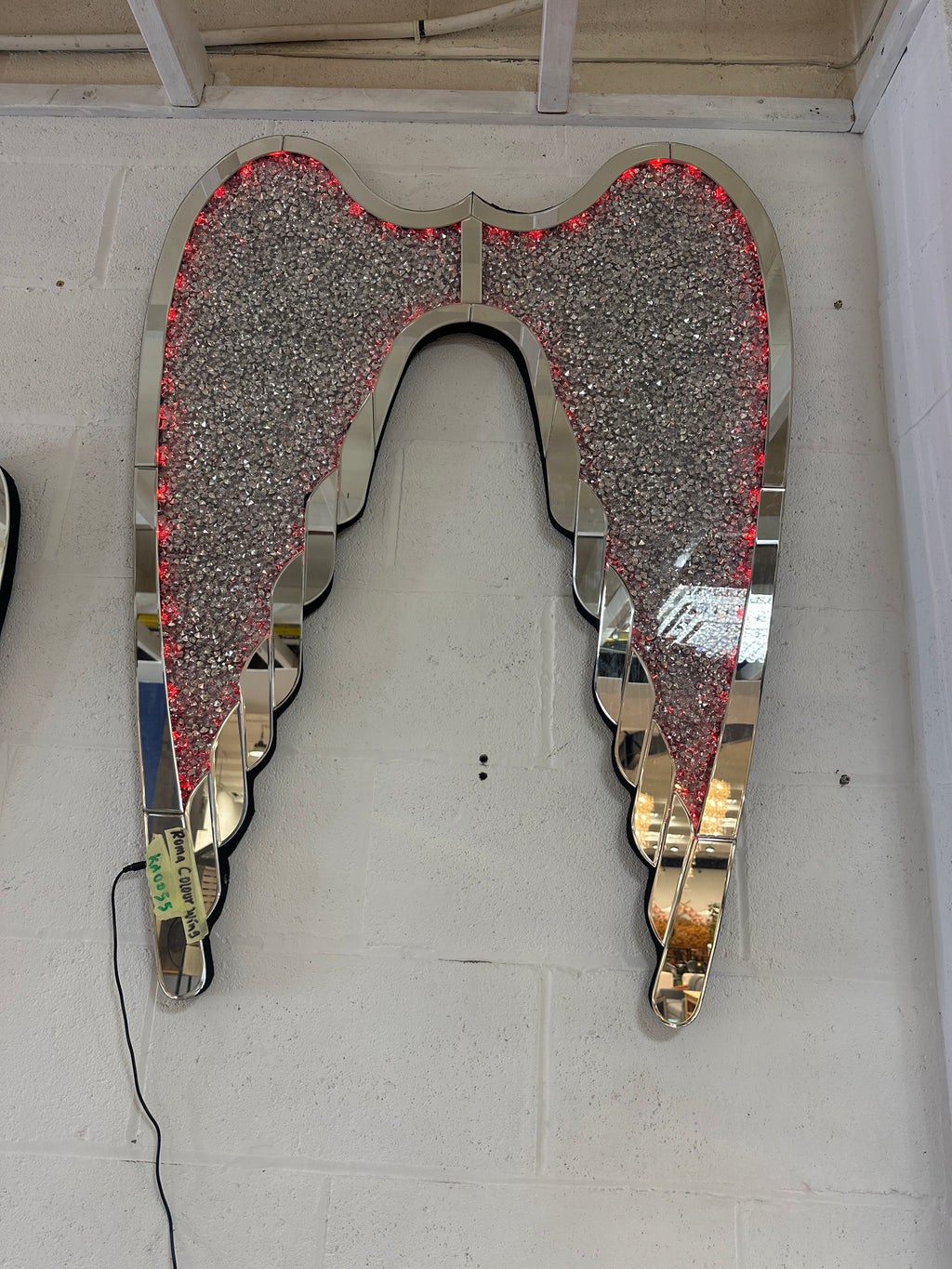 Bring glamour and ambience to your interior with this Roma Wings wall décor featuring colour-changing LED lights. The mirrored wing frame is filled with crushed crystals that sparkle beautifully under the glow of vibrant LED lighting. Designed to create a bold and radiant statement, this piece adds luxury to any living room, hallway, or feature wall. Whether lit in blue, white, or rotating colours, it transforms your space with elegance and personality.