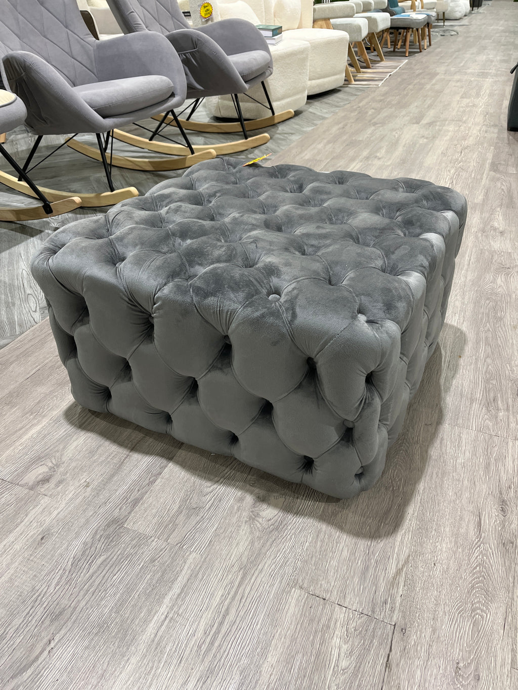 Add a touch of opulence to your home with this square footstool, featuring deep buttoning and luxurious velvet upholstery. Ideal for resting your legs while enjoying a good book or a cup of coffee, it also serves as a convenient spot for your glasses or scarf. This vintage-inspired pouffe enhances the charm of any space, and its incredibly soft velvet covering provides exceptional comfort.