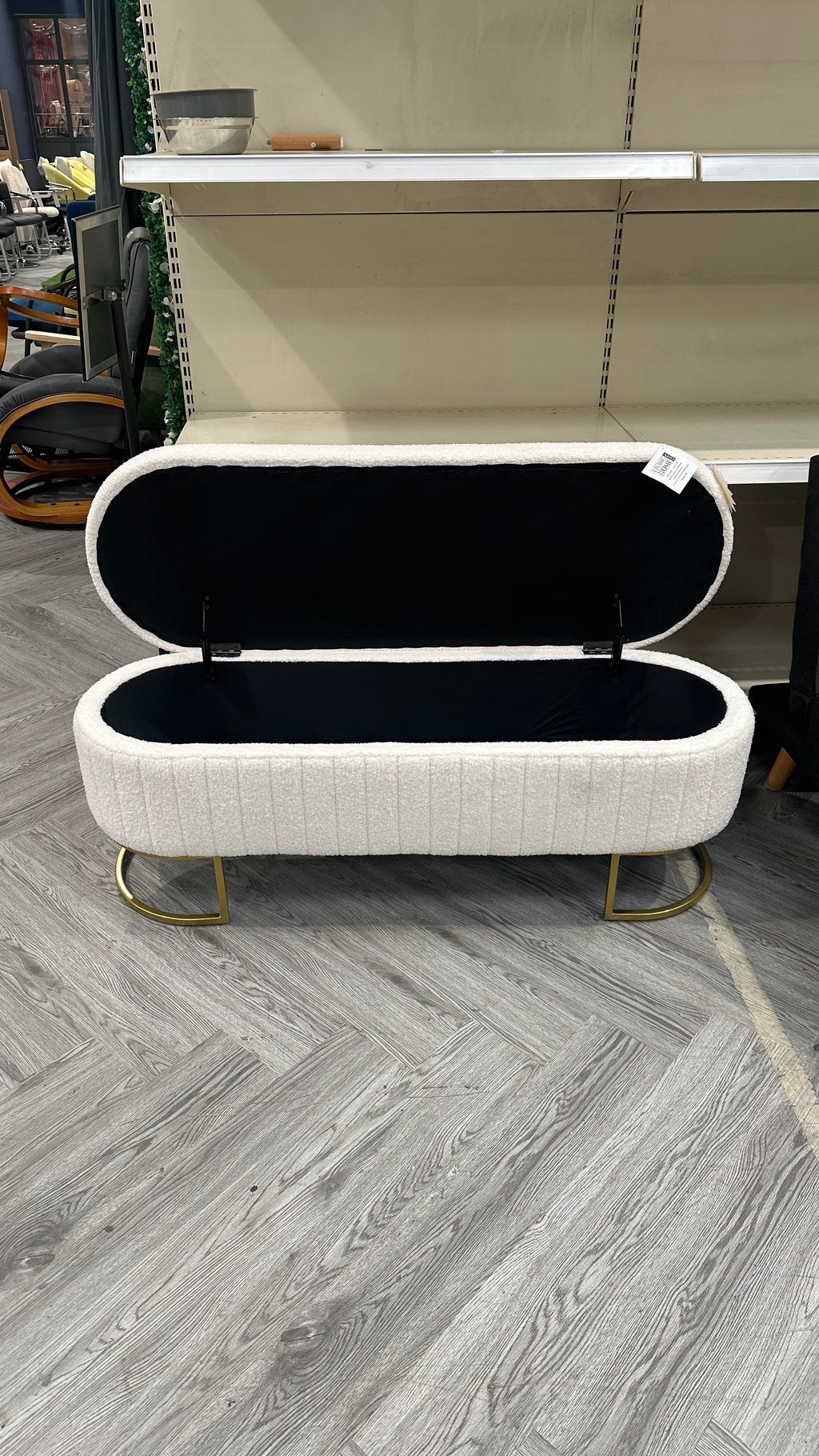 White Upholstered Oval Storage Bench Foot Rest with Gold Legs